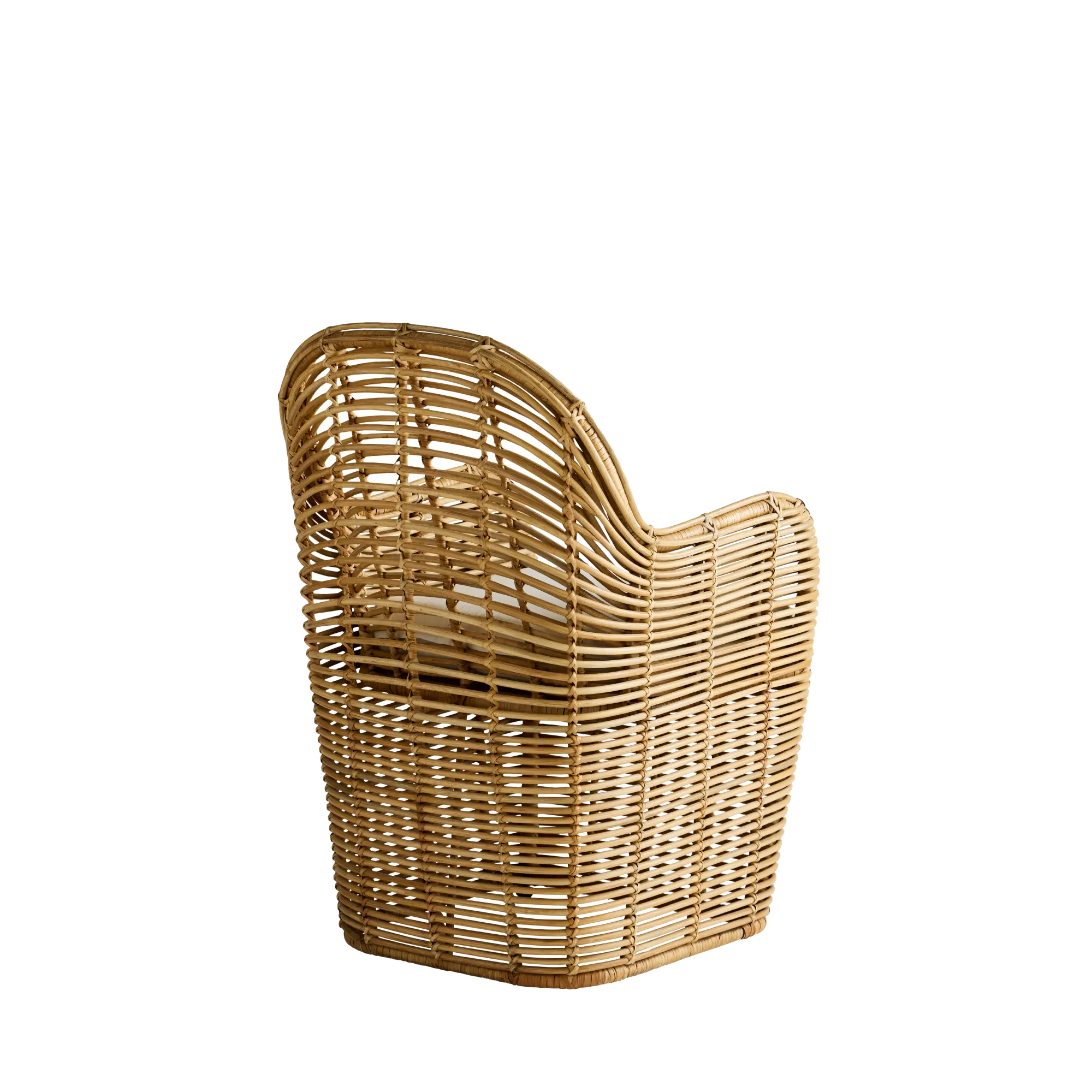 With its open weave in a natural finish, our rattan Echoes Chair brings a light and airy feel to any interior. Paired with an unbleached cotton muslin cushion, it strikes the perfect balance of understated elegance and comfort.