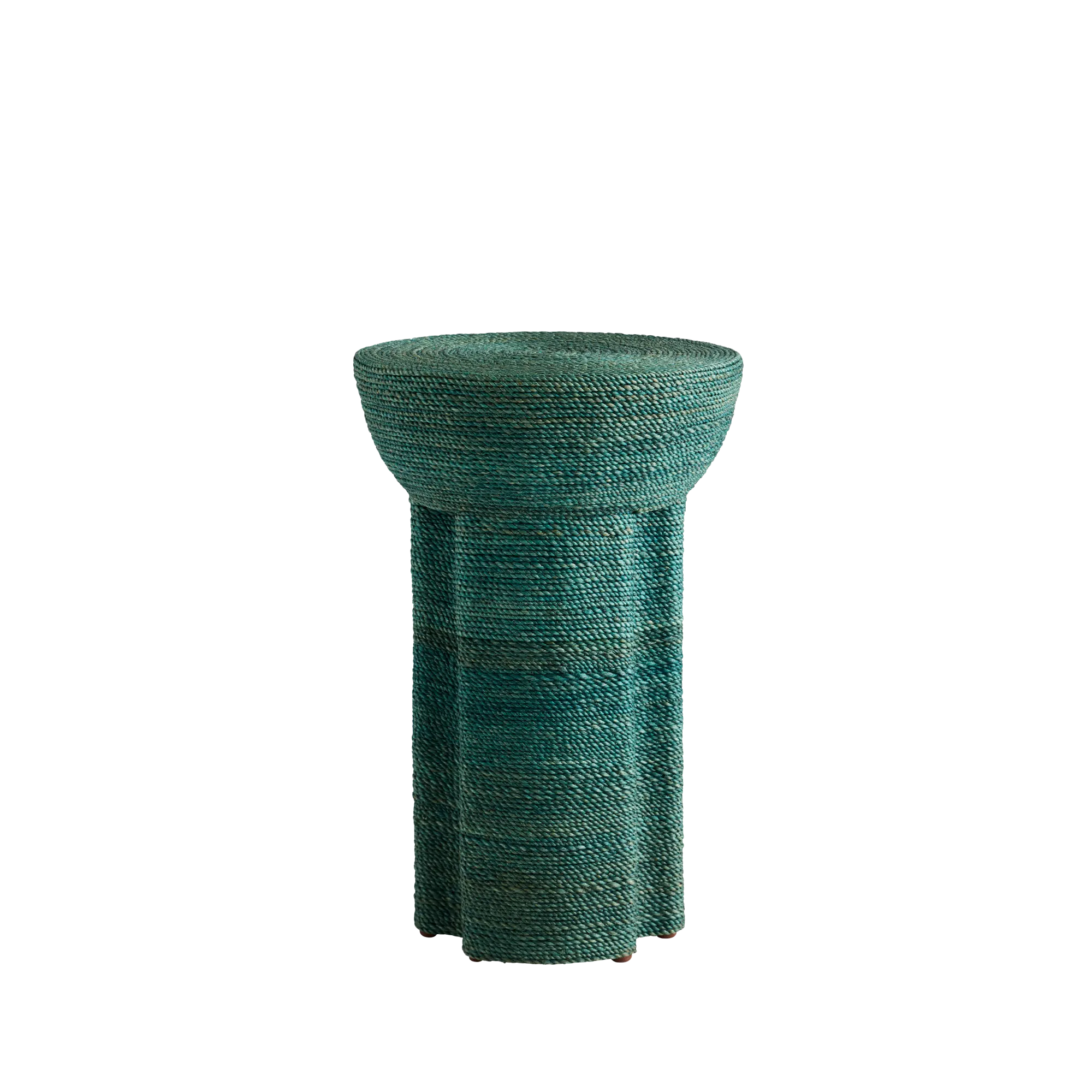 Hand-dyed in a deep teal, the Seafarer Accent Table shows off natural rope intricately braided and wrapped to form striking curves and a modern silhouette, adding an unexpected twist to your decor.